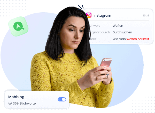 - Erhalten Sie Benachrichtigungen, wenn Ihr Kind auf Instagram nach diesen Keywords sucht, sie durchblättert oder Nachrichten mit diesen sendet.