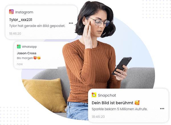 Synchronisieren Sie Benachrichtigungen von beliebten Chat- und Social-Media-Plattformen wie Snapchat, Instagram, WhatsApp und Messenger. Verstehen Sie die sozialen Gewohnheiten und Beziehungen Ihres Kindes und erkennen Sie schnell Anzeichen für soziale Probleme oder Cybermobbing.