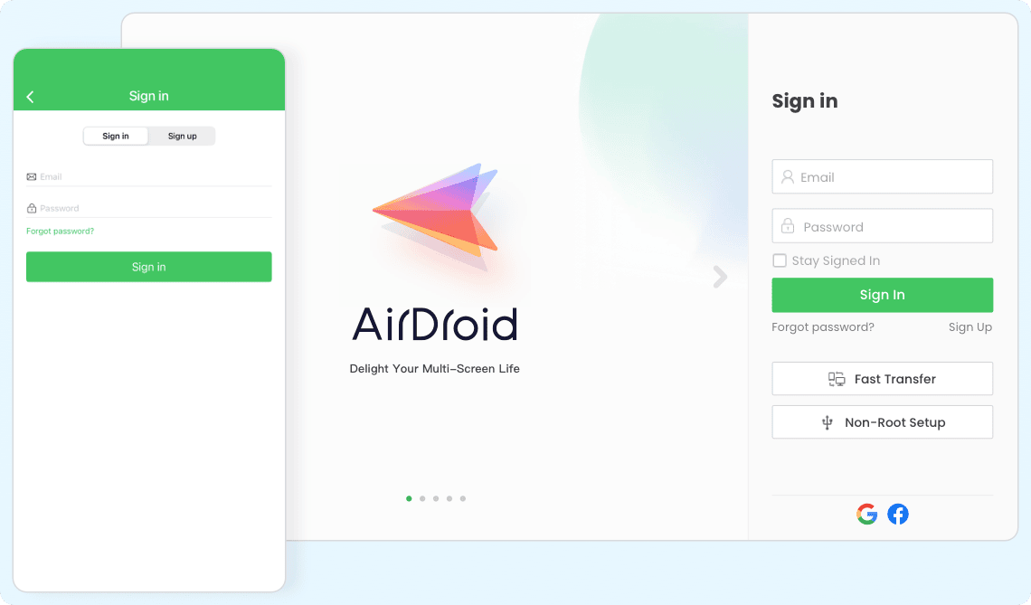 ¿No quieres instalar la aplicación de escritorio? No hay problema: AirDroid Personal funciona directamente en tu navegador, en cualquier momento y lugar.