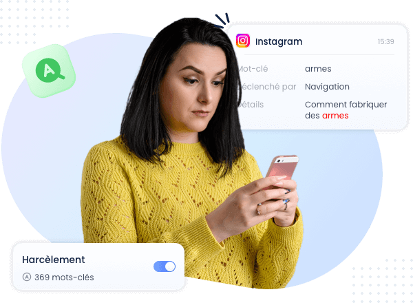 - Recevez des alertes si votre enfant effectue des recherches, navigue ou envoie des messages contenant ces mots-clés sur Instagram.