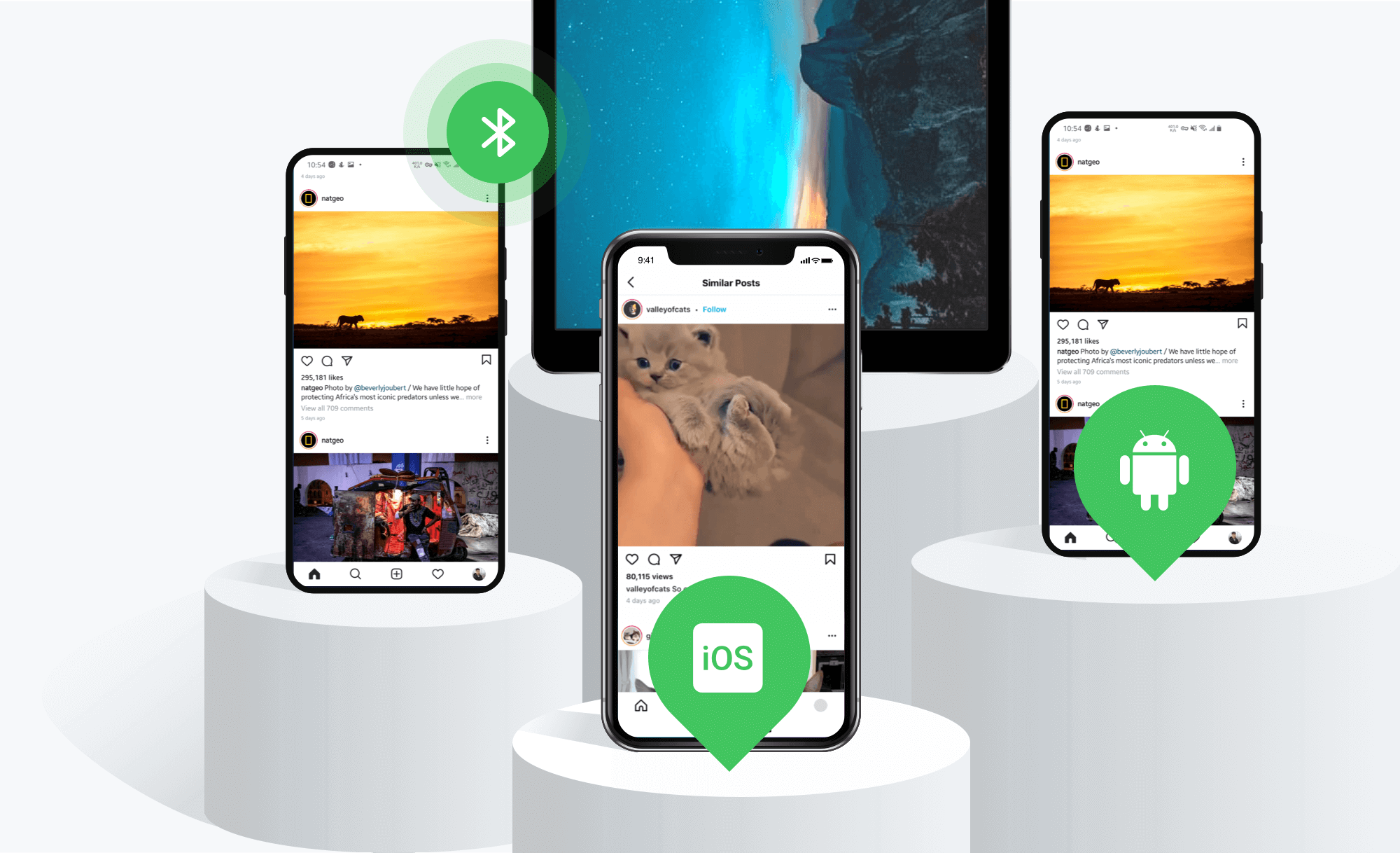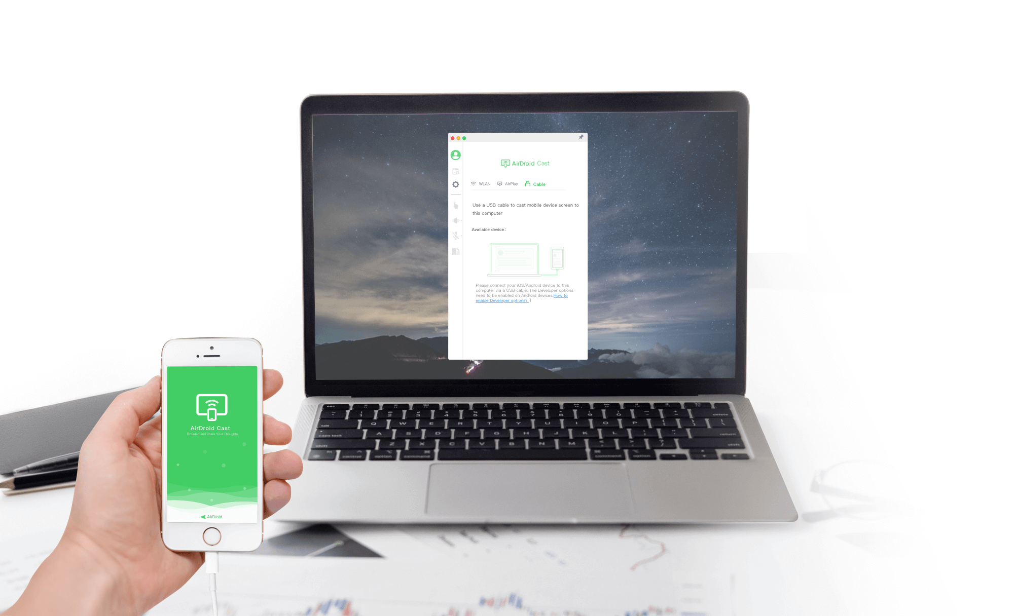 Trasmetti contenuti e controlla i tuoi dispositivi Android e iOS utilizzando un cavo USB, AirPlay o Internet.