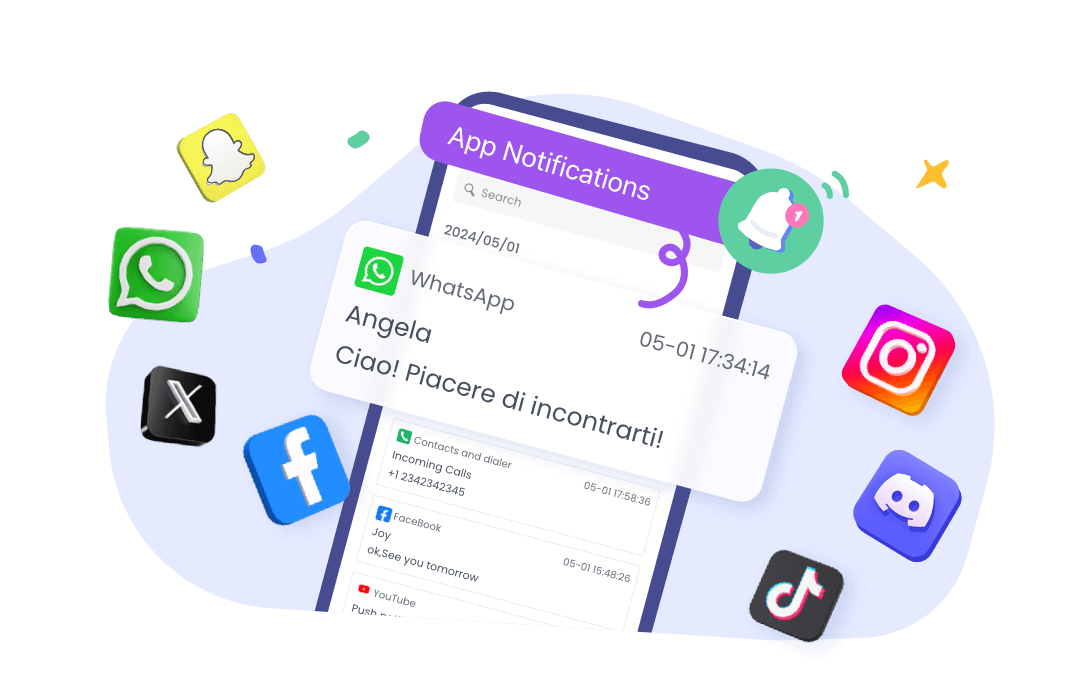 - Visualizzazione Messaggi: Visualizza e gestisci facilmente i messaggi sul telefono di tuo figlio impostando le parole chiave correlate.