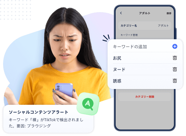 - お子様が関連キーワードでTikTok動画を閲覧している場合にアラートが届きます。