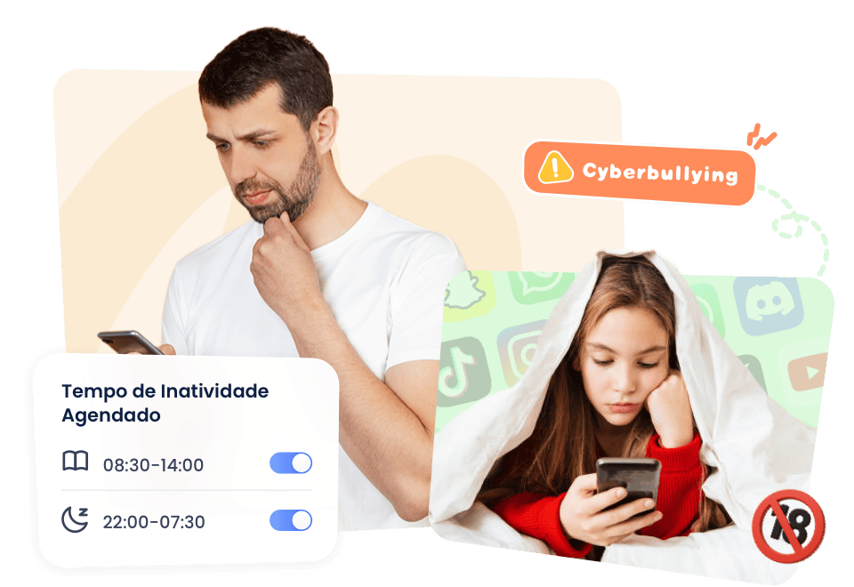 Monitore e detecte conteúdo impróprio em redes sociais, SMS e álbuns, bloqueie automaticamente chamadas/sites indesejados e receba alertas sobre atividades incomuns.