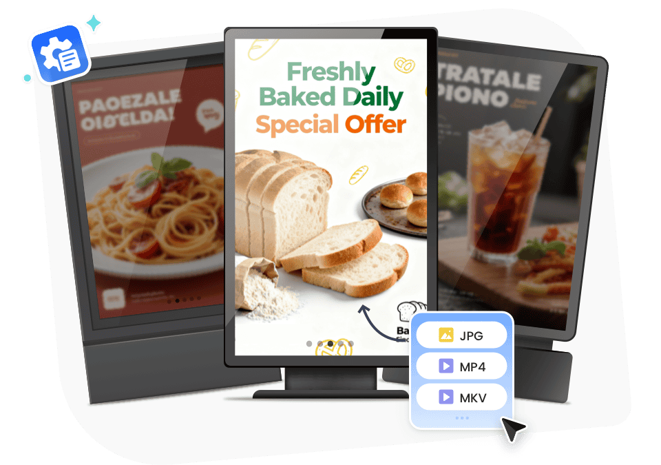 Демонстрируйте яркие цифровые меню с изображениями и видео. Обновляйте товары, цены и специальные предложения удаленно за считанные минуты. Используйте в Kiosk режим заставки для выделения ежедневных специальных предложений.