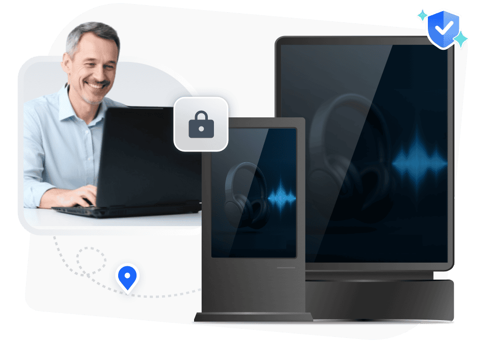 Управляйте рекламой на экранах такси, арендуемого и общественного транспорта. Удаленно обновляйте кампании, используйте режим Kiosk для безопасного воспроизведения и отслеживайте состояние устройства на ходу.