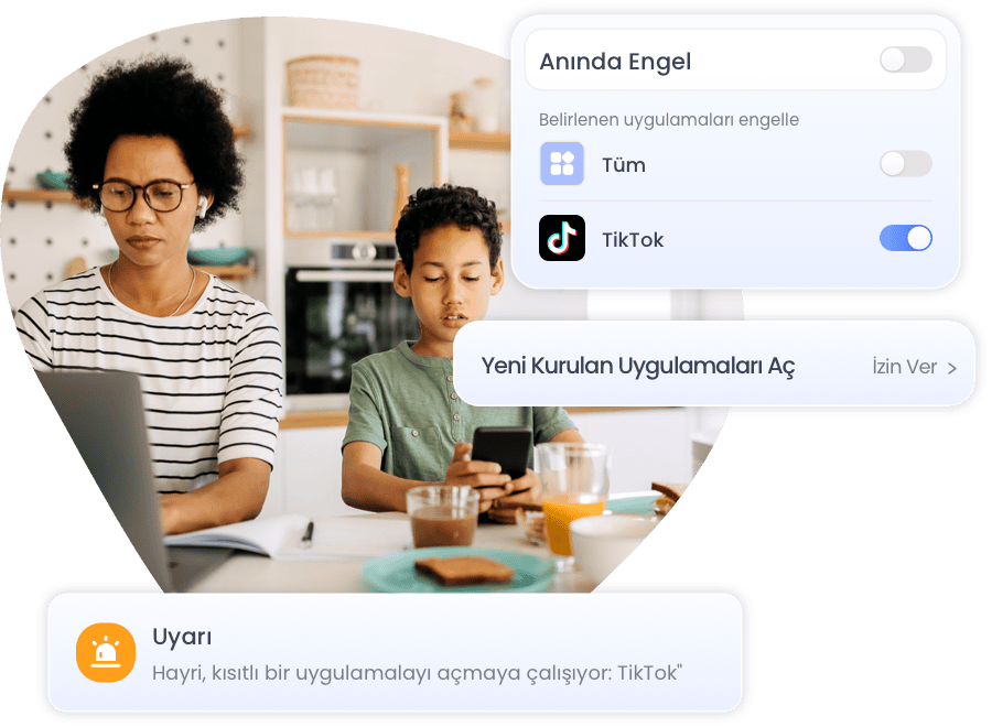 - Çocuğunuz engellenmiş bir uygulamaya erişmeye çalıştığında veya yeni bir uygulama yüklediğinde gerçek zamanlı uyarılarla haberdar olun.