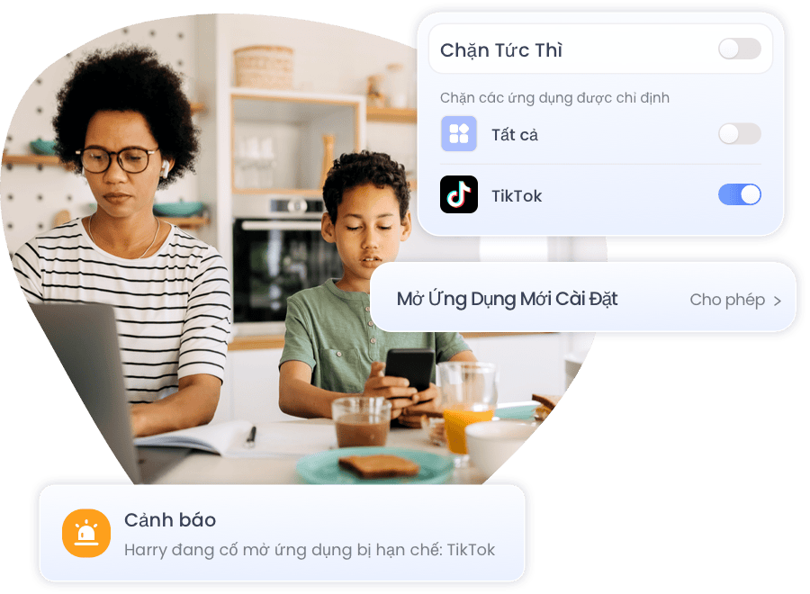 - Luôn cập nhật thông tin với các cảnh báo thời gian thực khi con bạn cố gắng truy cập một ứng dụng bị chặn hoặc cài đặt một ứng dụng mới.