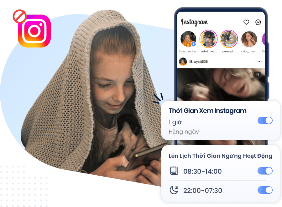 - Dễ dàng chặn Instagram chỉ với một cú nhấp để bảo vệ con khỏi các mối nguy hiểm.