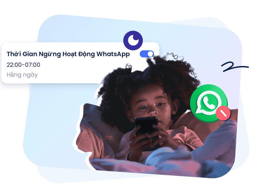 Thiết lập thời gian nghỉ hoặc giới hạn thời gian hàng ngày. Với trẻ dưới 13 tuổi, bạn có thể chặn WhatsApp chỉ với một cú nhấp.