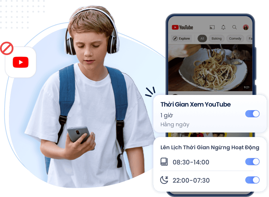 - Xác định giới hạn thời gian sử dụng cho YouTube hoặc chặn YouTube chỉ với một cú nhấp chuột.
