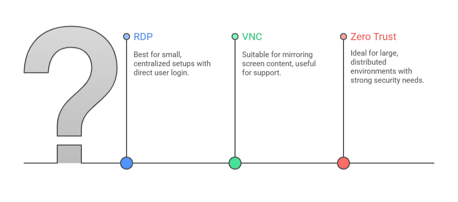 RDP, VNC, and Zero Trust Compared for Business Use