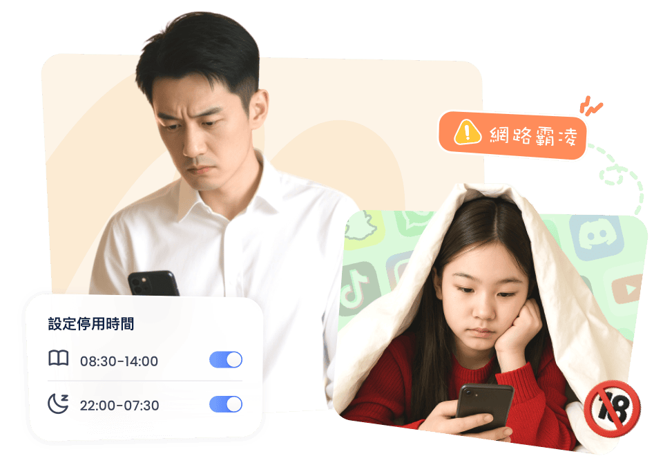 青春期前孩童熱衷社交媒體與線上遊戲,可能遭遇網路霸凌與不當內容。需著重互動監測、設定數位宵禁與阻擋有害資訊。