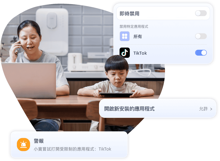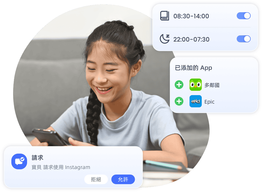 - 自訂應用程式白名單,讓孩子在學習和娛樂間取得平衡和自由。