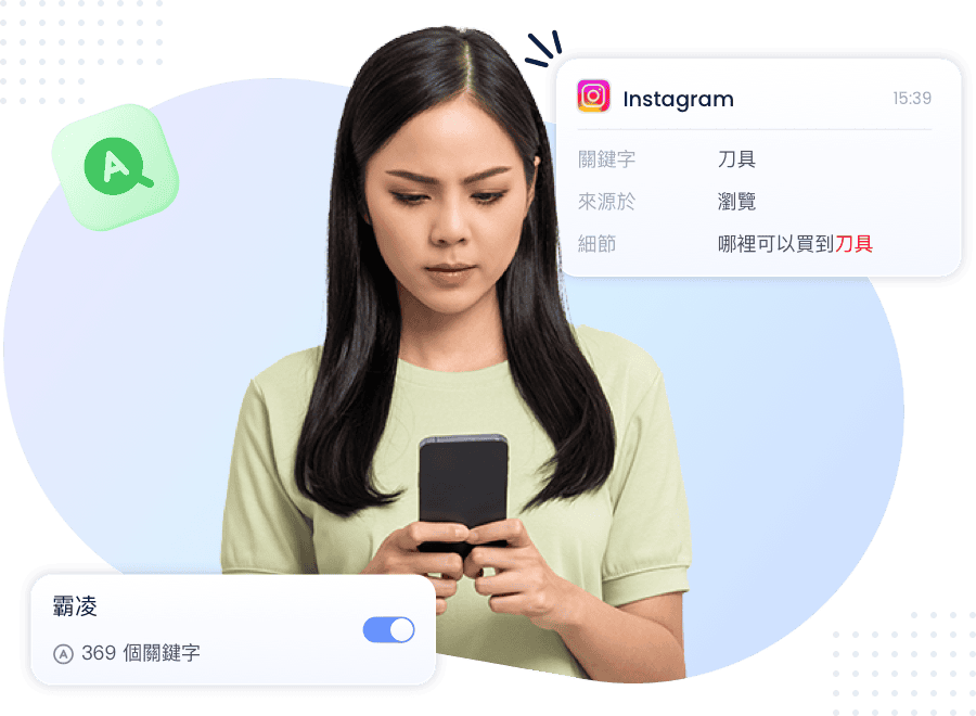 - 自訂關鍵字阻擋與色情、網路霸凌等有關的內容