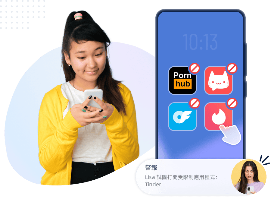 - 在您的孩子試圖使用這類應用程式時收到通知