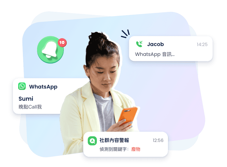 WhatsApp 無內建的家長監護功能,因此除非您登入孩子的帳號,否則您無法從另一台手機直接查看孩子使用 WhatsApp 的情況。但 AirDroid Parental Control 等第三方家長監控應用程式可讓您監控孩子的 WhatsApp 訊息,即早發現不當內容。