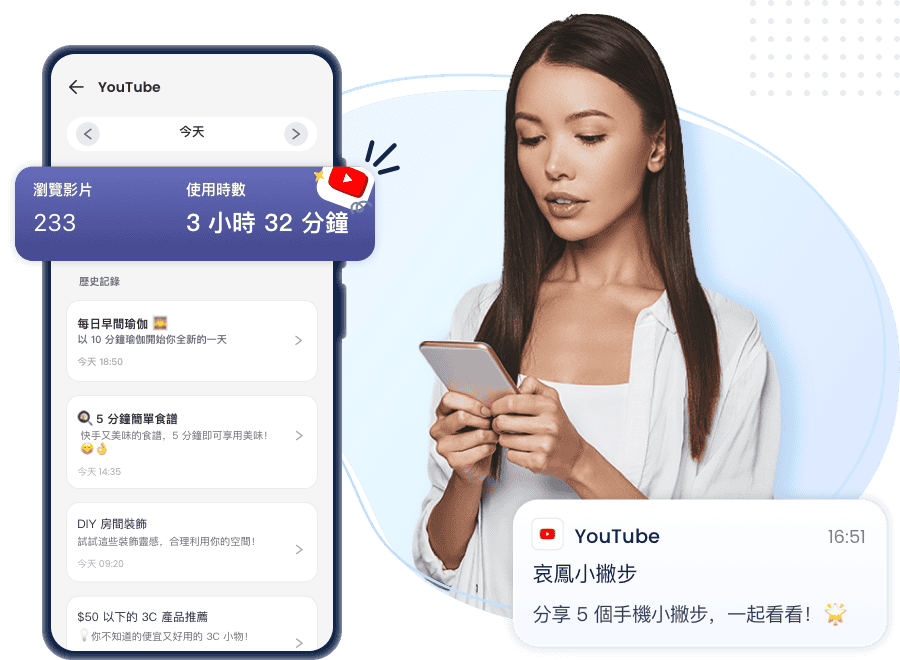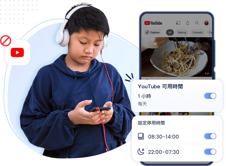 - 自由安排 YouTube(含 App 及網頁版)的每日可用時段